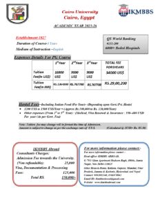 No Entrance Exam – Many PG programs in Egypt do not require students to pass an entrance exam like NEET-PG or USMLE.
